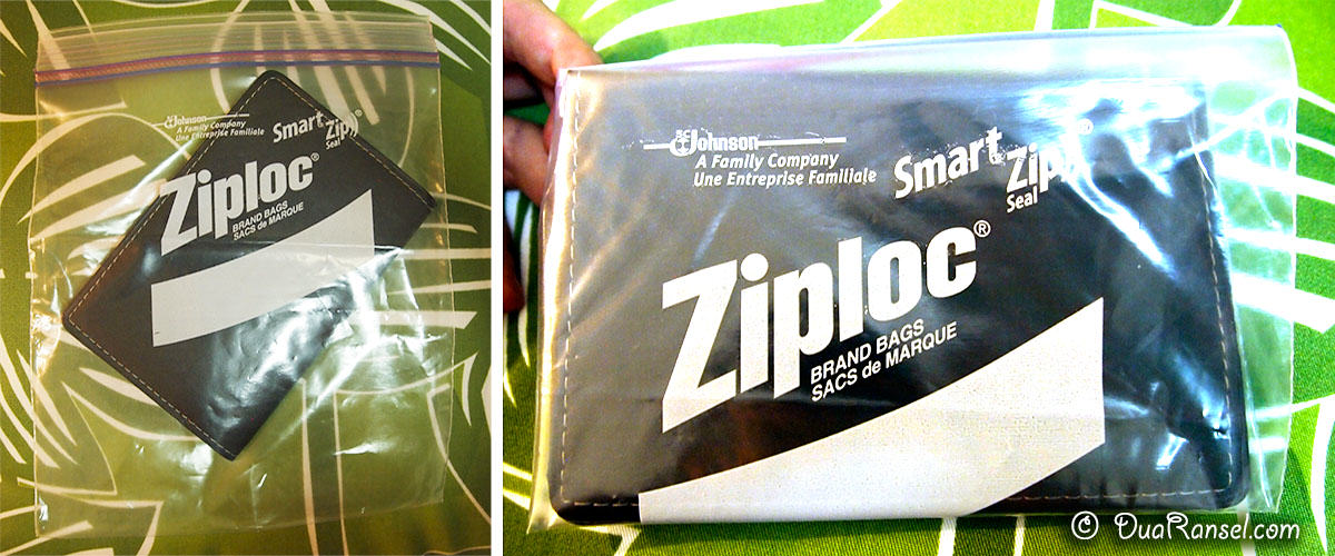 - Kantung plastik yang bisa dibuka tutup dan kedap air. Ziploc adalah merk terkenalnya. Tapi merk ini nggak penting. Cuma saya sebut untuk mempermudah penjelasan saja