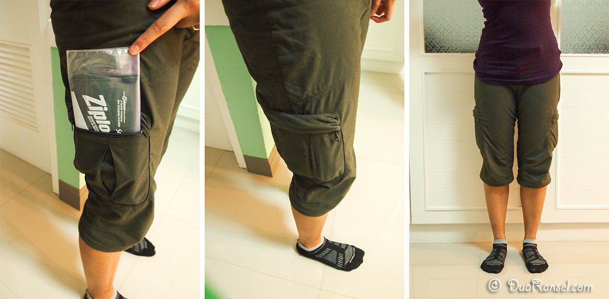 - Celana kargo di atas adalah konvertibel alias bisa dijadikan panjang / pendek. Ini versi pendeknya, setengah lutut.